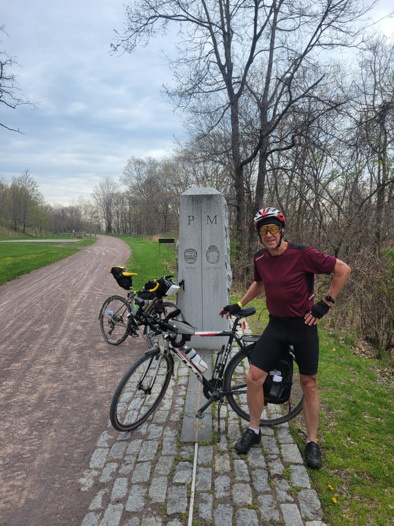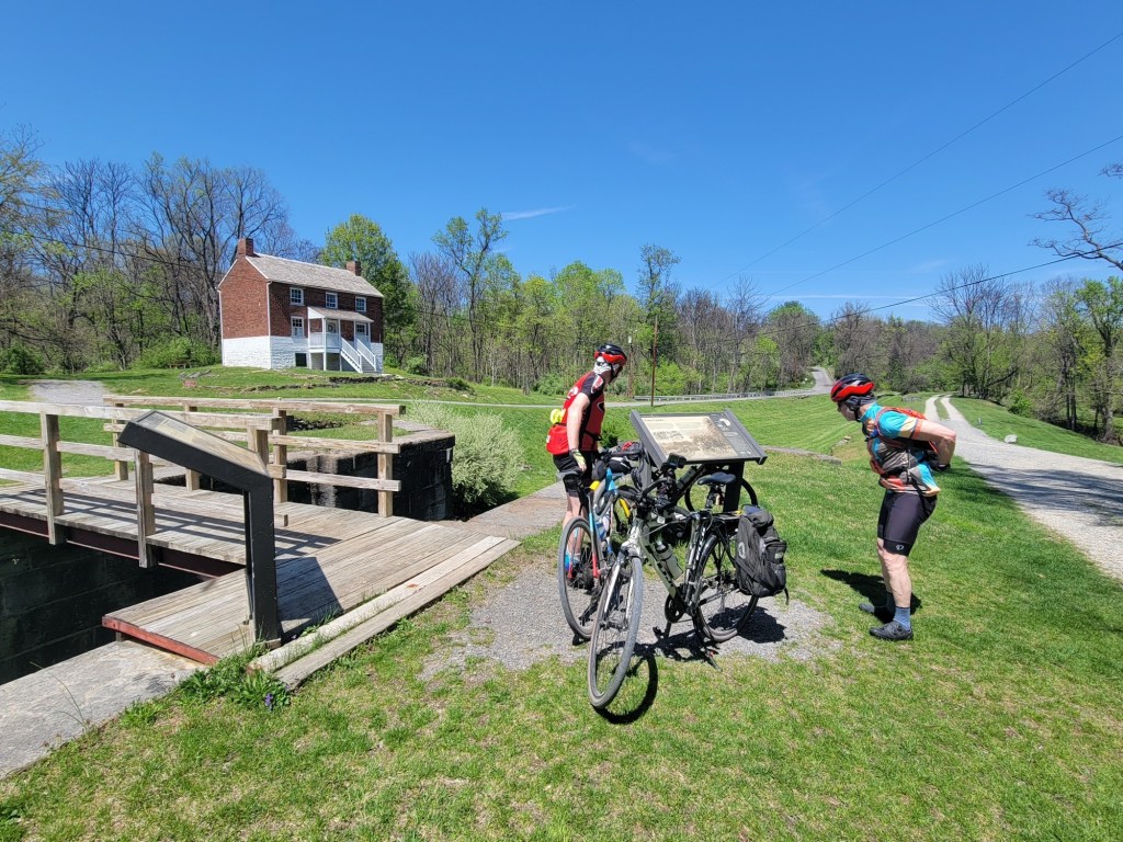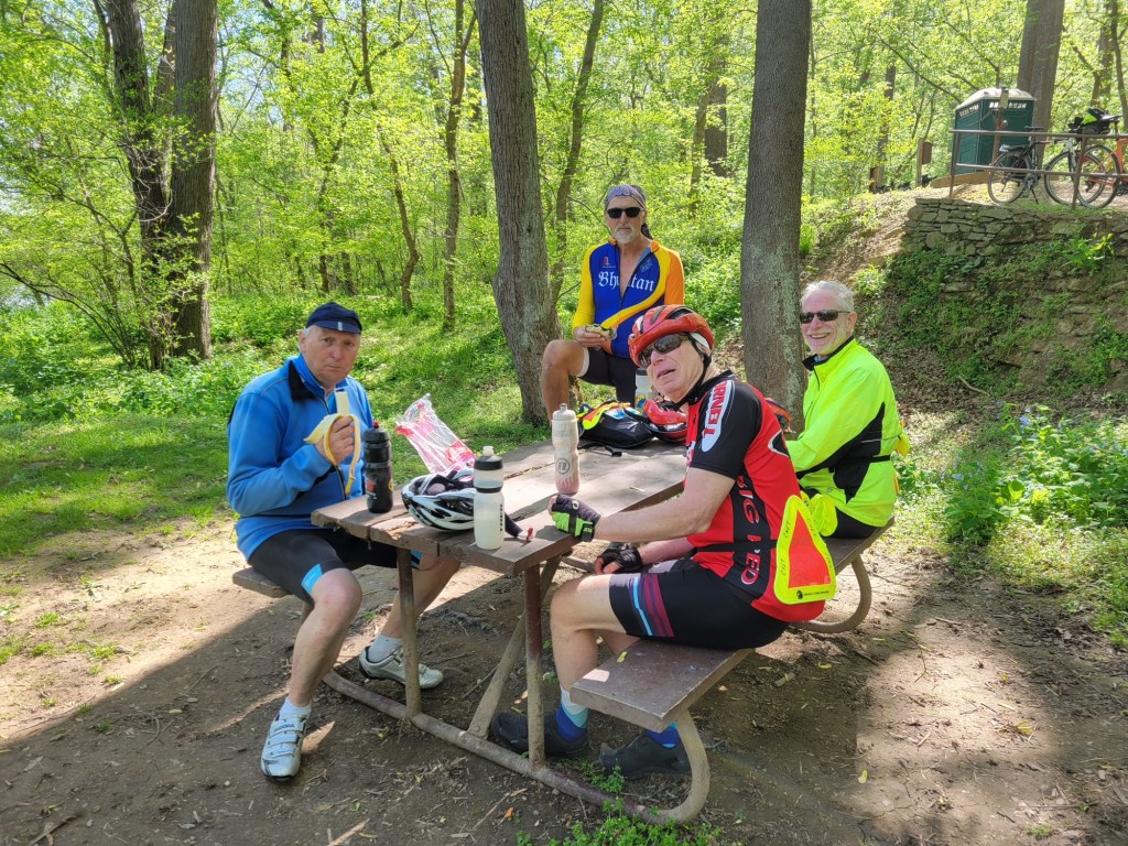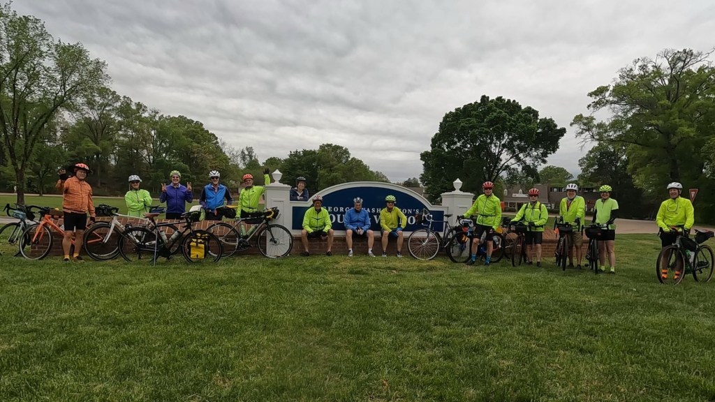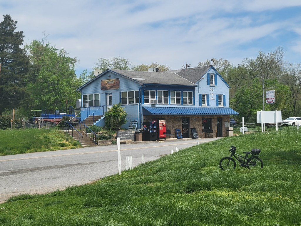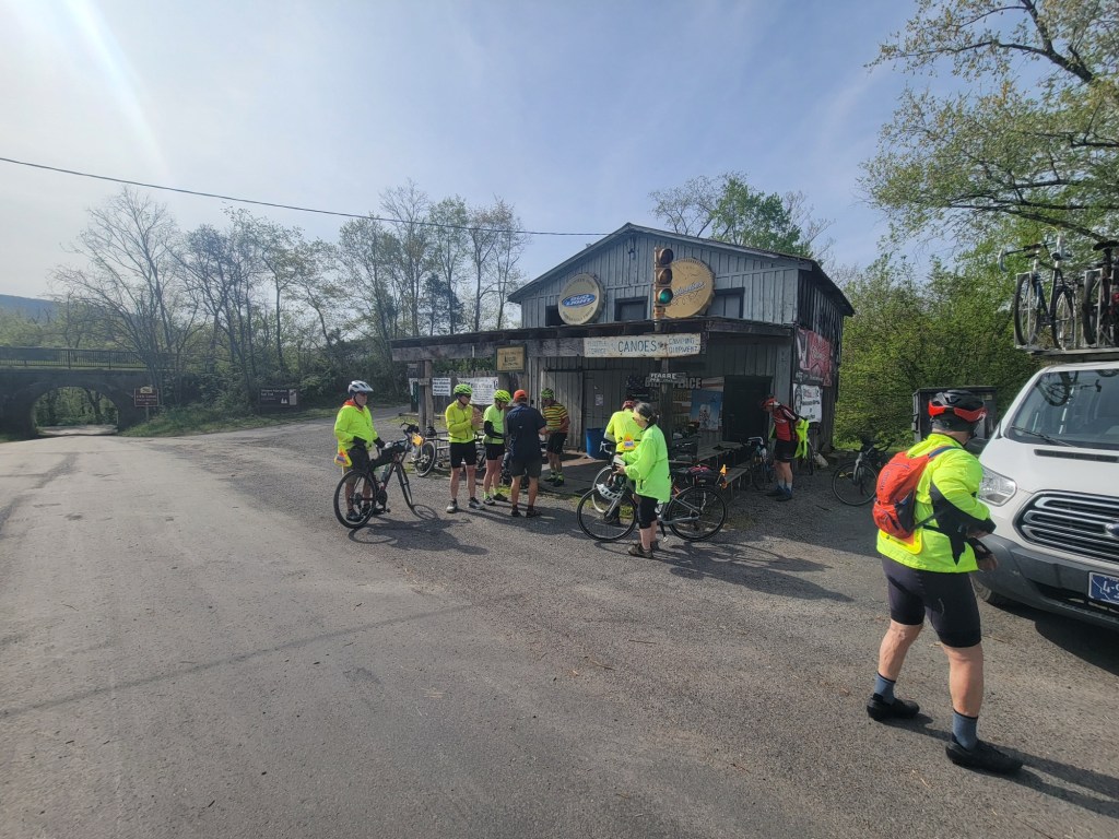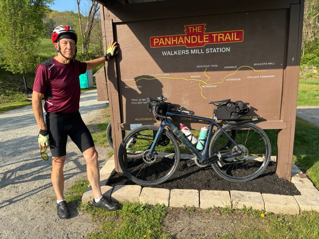 It was a bit tricky getting out of Pittsburgh, we made some wrong turns, but sorted it out and after we got on that first big hill out of the city all was straight forward from then on. Some of us gathered at the border between PA and WVA to have some lunch and take a group photo, then off we went to tackle those two big hills. I have a Wahoo ELEMNT GPS with the downloaded RidewithGPS routes that Adventure Cycling provided to us and it works pretty well on the road. On complicated city routes it is a bit more sketchy.