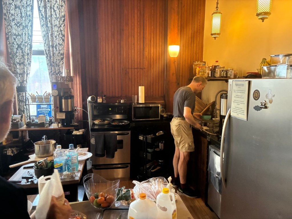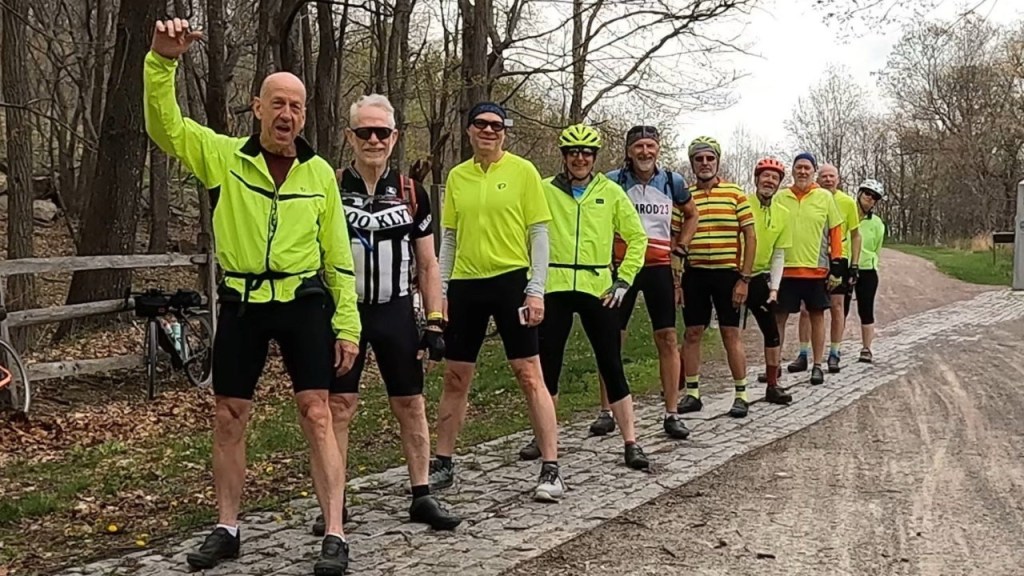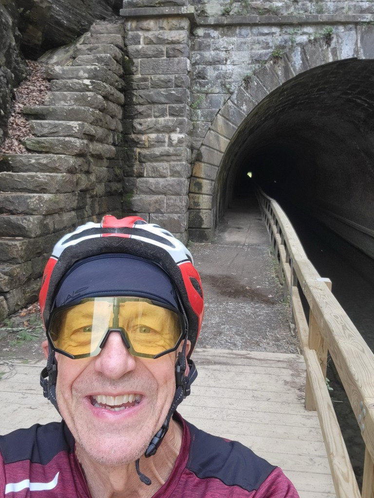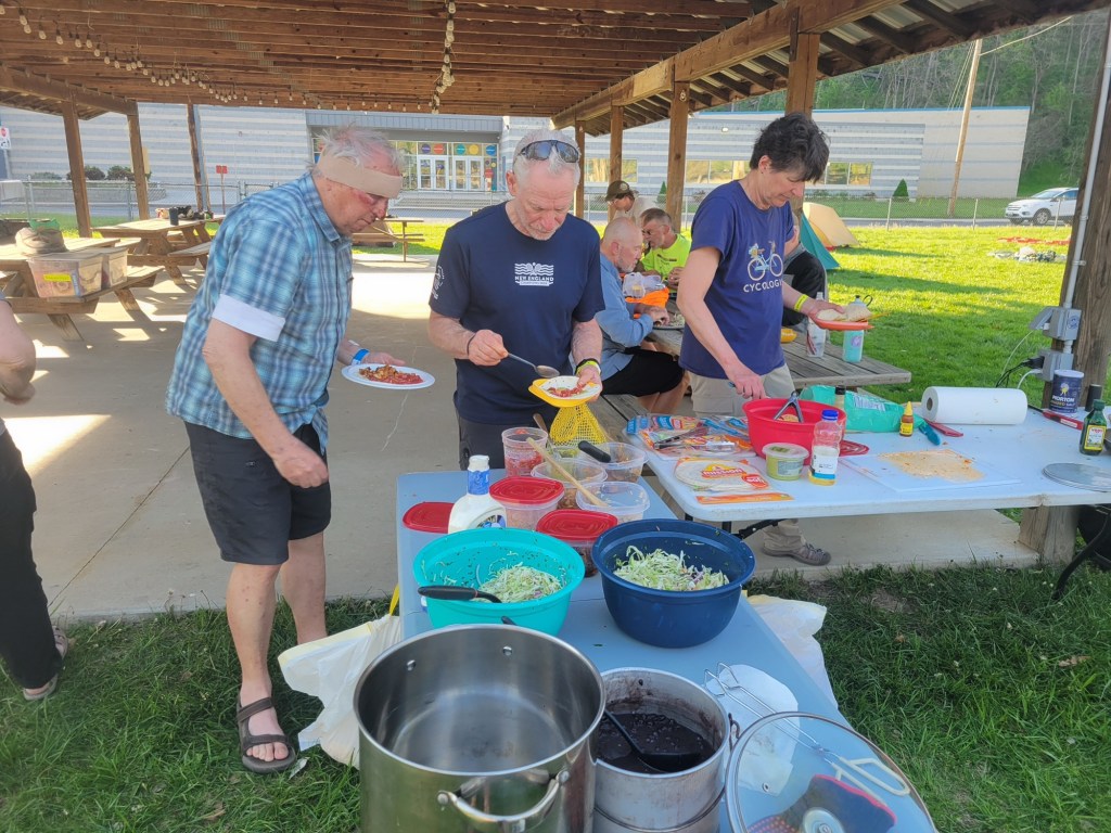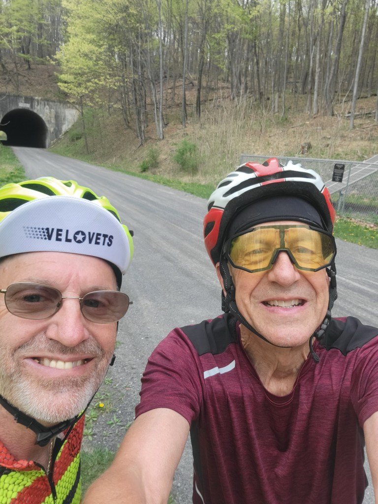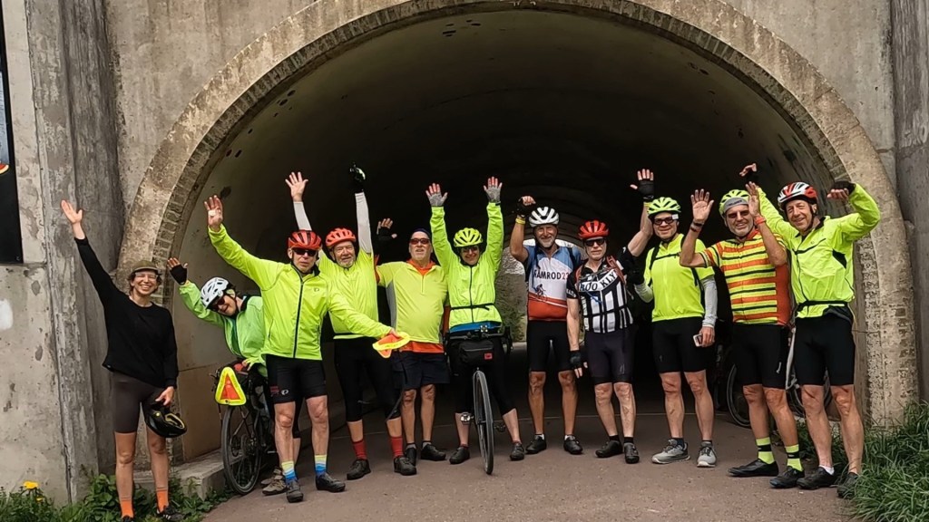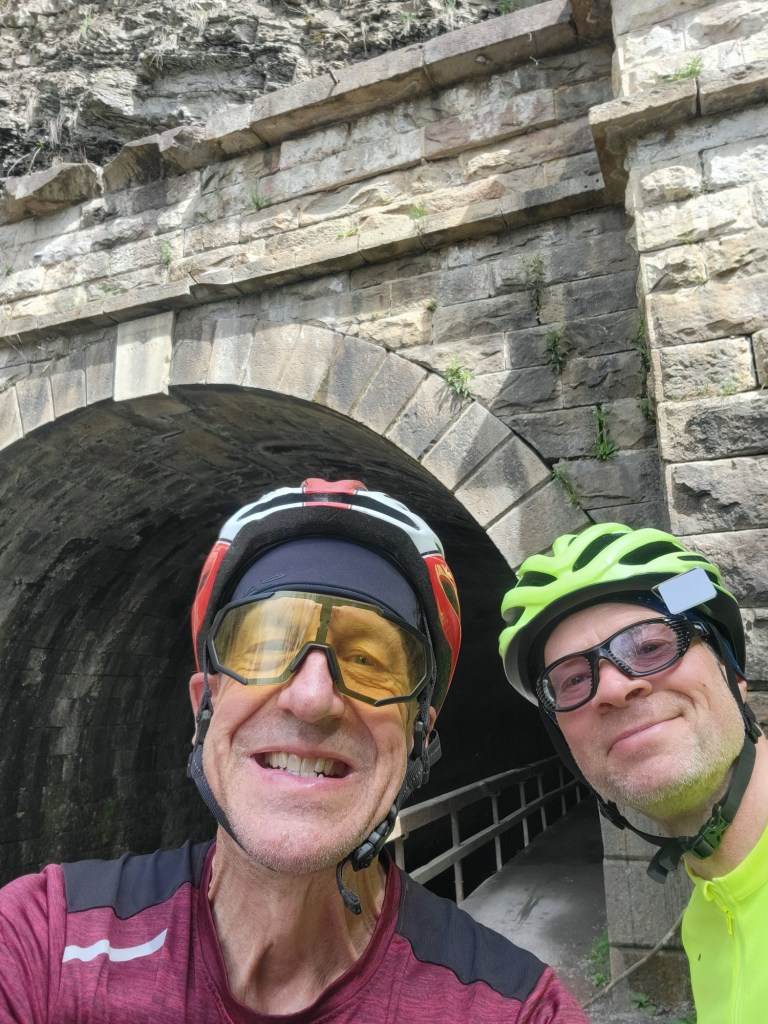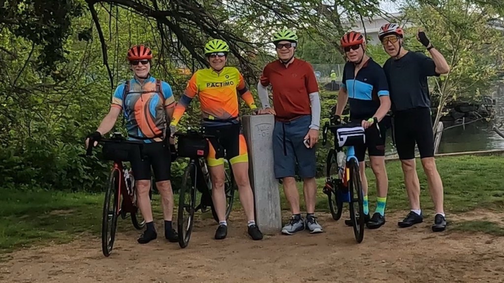 It was a bit tricky getting out of Pittsburgh, we made some wrong turns, but sorted it out and after we got on that first big hill out of the city all was straight forward from then on. Some of us gathered at the border between PA and WVA to have some lunch and take a group photo, then off we went to tackle those two big hills. I have a Wahoo ELEMNT GPS with the downloaded RidewithGPS routes that Adventure Cycling provided to us and it works pretty well on the road. On complicated city routes it is a bit more sketchy.