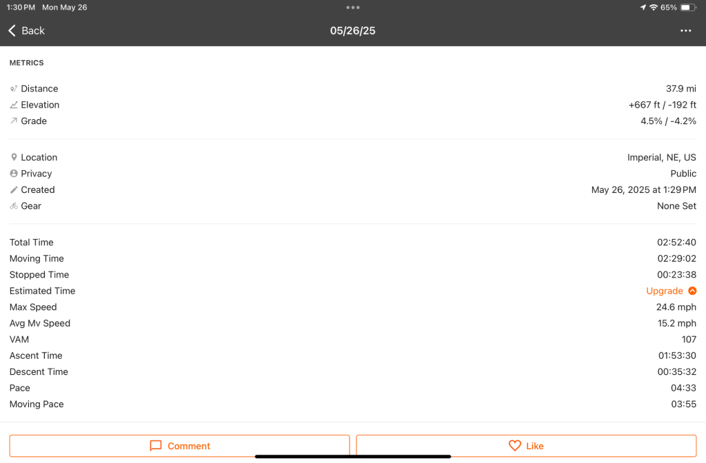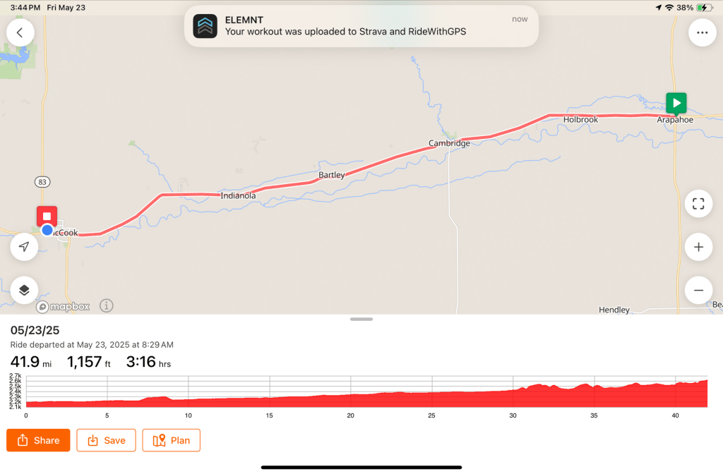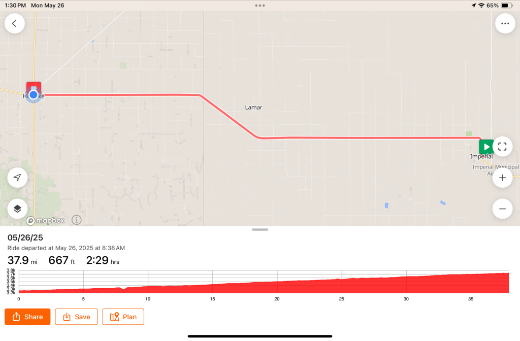 We are slowly but surely gaining altitude as we head towards the western continental divide. At McCook we are now at 2,500 ft. We are all looking forward to tomorrow’s day off and exploring what there is to explore here in McCook, but in particular, having a good steak dinner at the Coppermill Steakhouse!