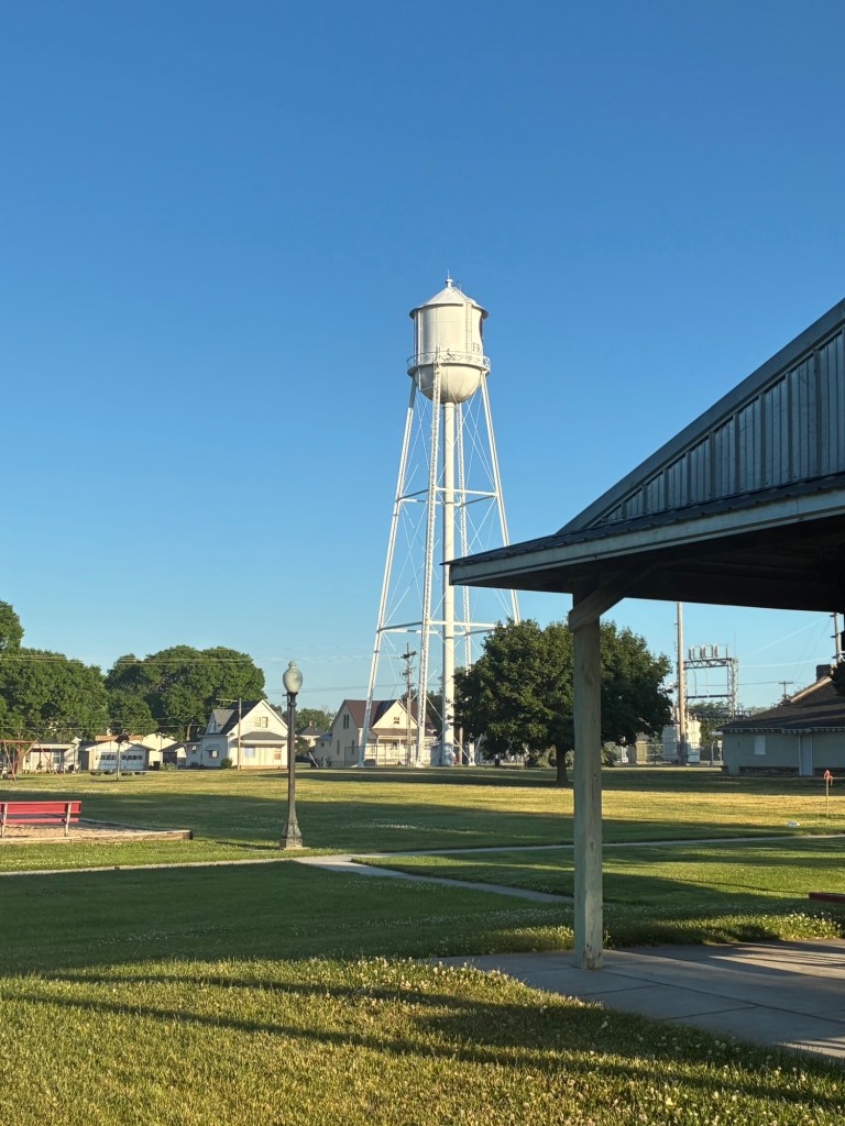 A day off in McCook Nebraska! Nice getting up leisurely at 7 AM and getting breakfast served at the hotel. Had a great nights sleep on a cozy bed after a delicious pork ribs dinner at the Taste of Texas BBQ restaurant. Feel again like a normal human being! Several of us set out at 9 to explore the town. The houses to the North of the town were very nice- we saw George Norris’s house, a former Senator of Nebraska, and the beautiful park facing his house. I ate a runza at the Embers Bakery on the main drag.