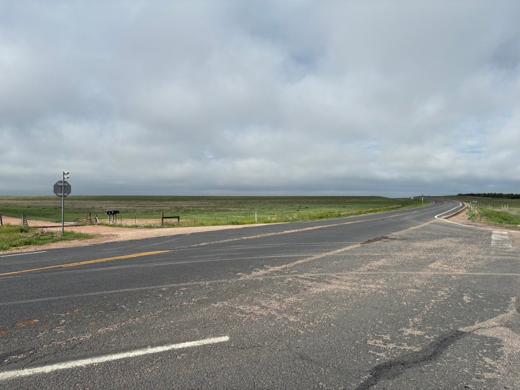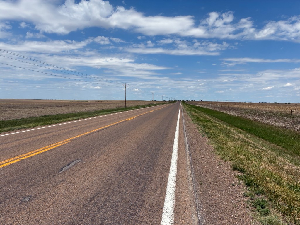 We passed through the Pawnee National Grassland park area. More really wide open spaces with nothing but prairie all around. We passed by some areas where cattle were grazing, a feed lot and some large cultivated areas, but mainly it looked like open prairie. The road was very busy- mostly trucks. Fortunately the shoulder was very wide and we could comfortably ride with trucks whizzing past at 70 mph.