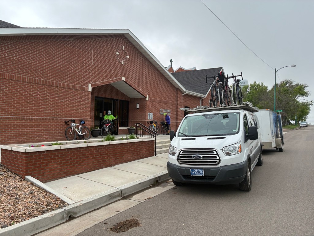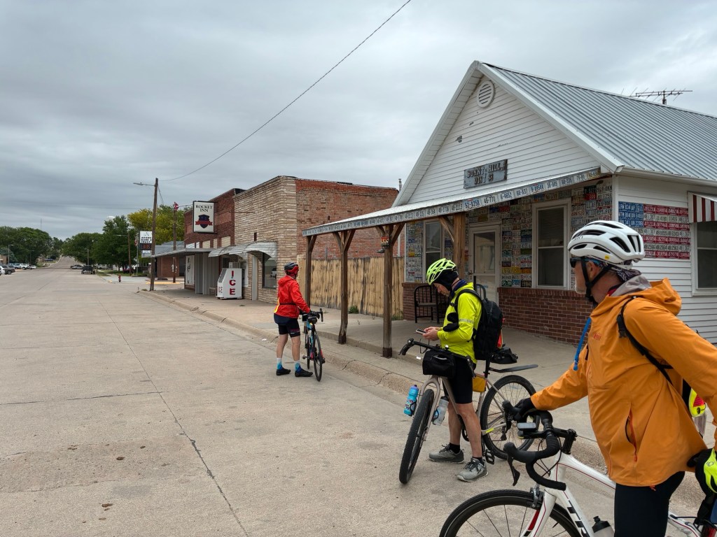 We stopped only at one place, the Nebraska/Colorado border at 27 miles into the ride. There were no towns between Imperial and Holyoke. Staying tonight at a Catholic Church- another night where we don’t have to set up tents, particularly nice given the wet weather! Unfortunately no showers, but given the easy riding the past couple of days, no big deal.