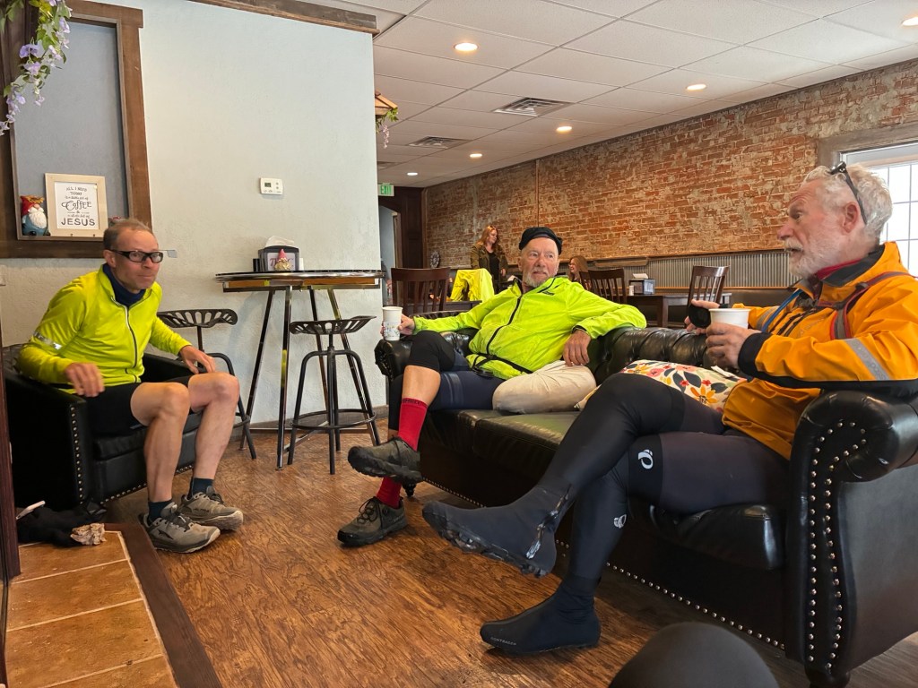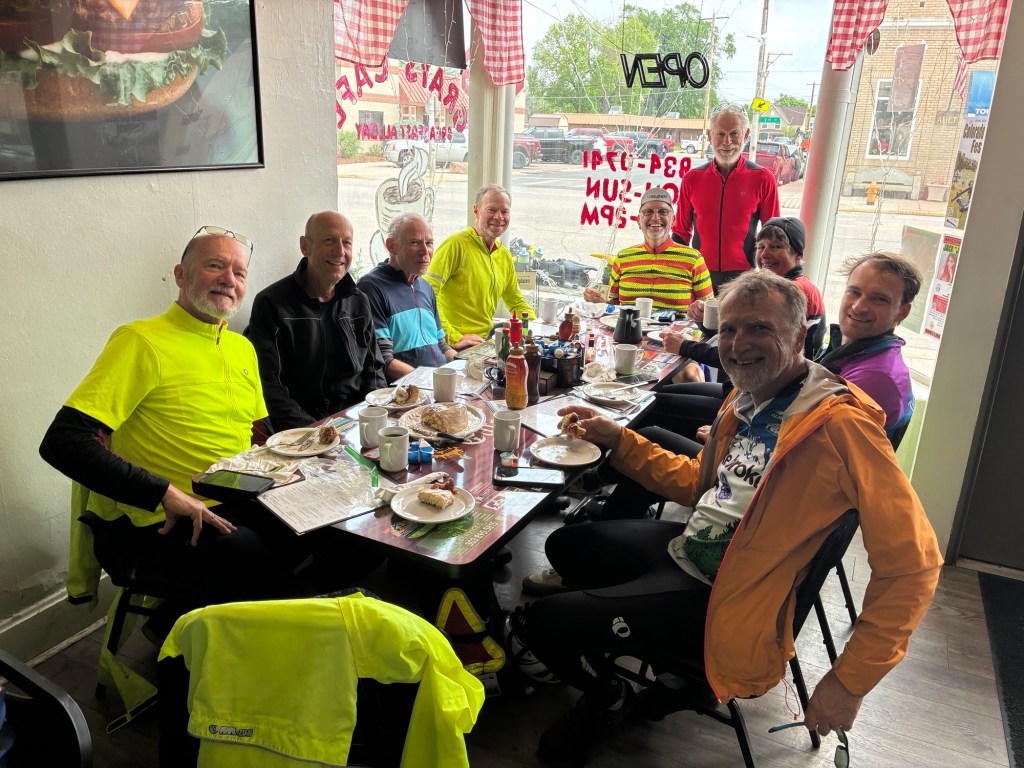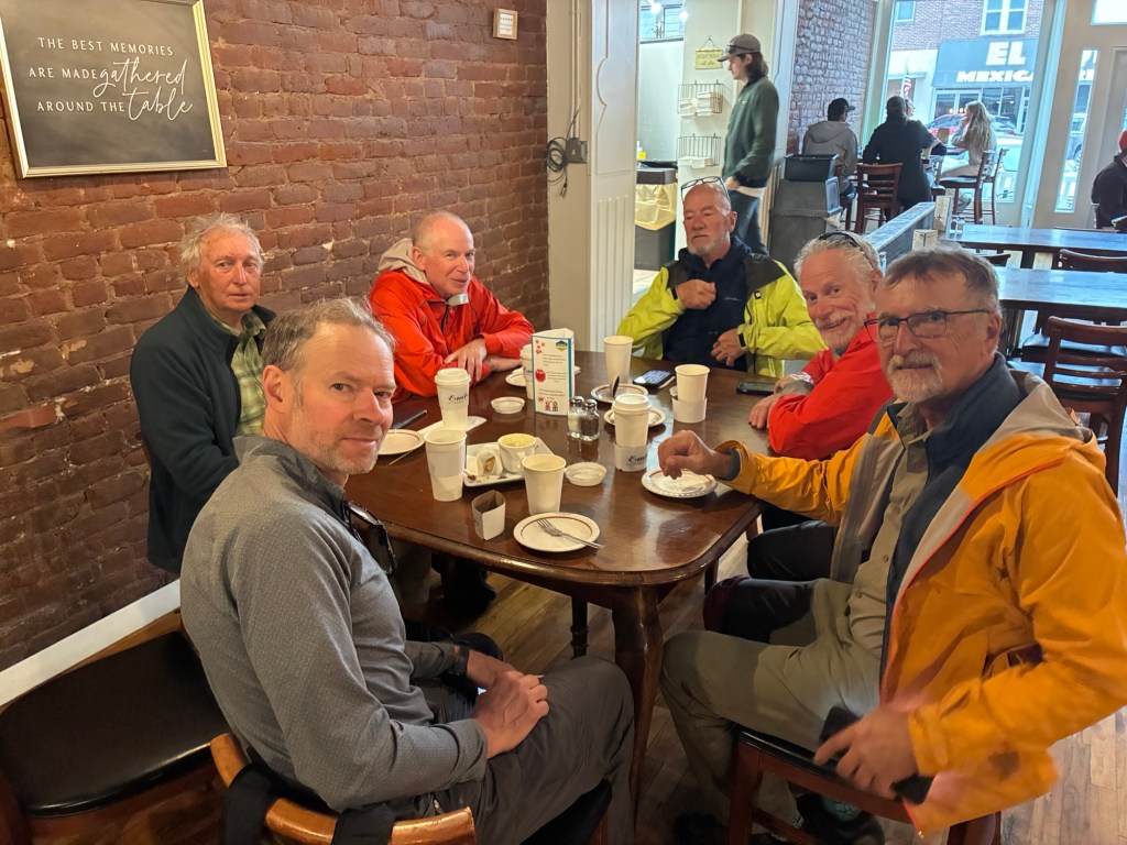 Gray’s Cafe- a rare group photo with Timmie in the picture- he is usually far out in front of the rest of us