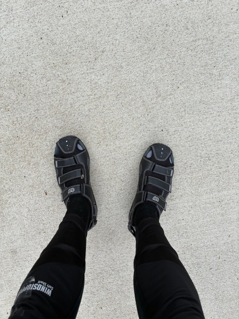 SPD sandals I got- very comfortable- no more sore big toes! These relieved my toe issue. At Fort Collins I bought a new pair of regular SPD bike shoes that have more room in the toe area so I will be trying these out on our next ride this Saturday.