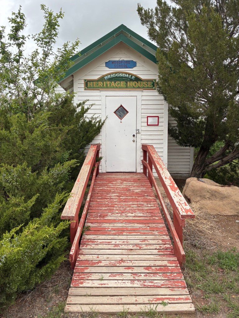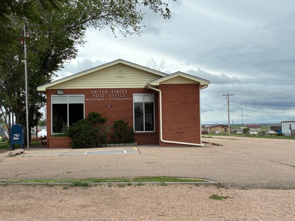 We stopped at a cafe where Arlen had parked the support van and had a nice lunch- I had a roast beef sandwich au jus. This place was in the middle of no where but had a nice bar area and the food was very good so it must attract the locals from miles around. We are camping in the gymnasium of the Briggsdale High School. Now that school is out the place was available for us to put our sleeping bags in the gymnasium and use the showers. Not much here in Briggsdale except the high school. There is a post office and a fire station, and there are some houses. It’s a fairly sizable high school so again they must attract kids from miles around. It’s lucky we are inside tonight as there are some storms forecast.