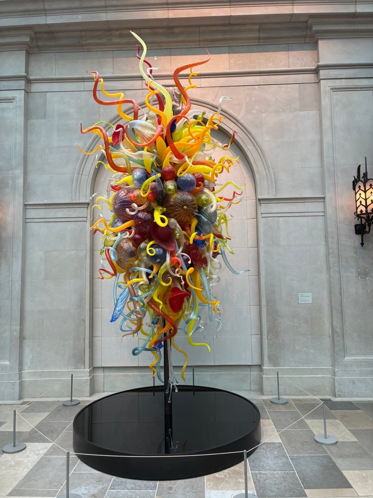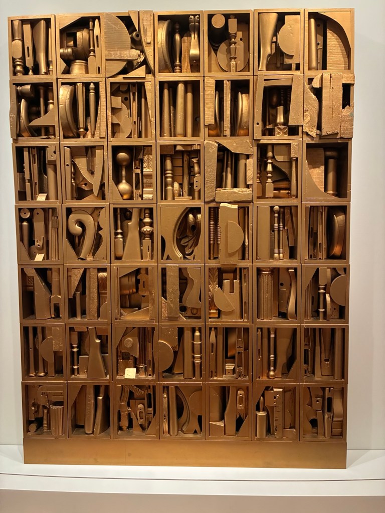 Terrie and I were cooks for breakfast and we prepared bacon and eggs, since we weren’t in any rush to take off. Normally it’s a cold breakfast- yoghurt, cereal, bananas, bagels, etc, but we had more time this morning. The rain let up while we were eating, but started again around 9 and kept going all day. We took the van into Columbus Ohio to see the sites, a good way to spend a rainy day! We all split up doing various things. First to REI to get stuff- bikers love getting stuff. I wanted to replace my headlight as the battery was wearing out, and replace some water bottles that started to have strange mold like things growing in it. Then several of us were dropped off at the Columbus Museum of Art. A great exposition of artwork by Louise Nevelson.